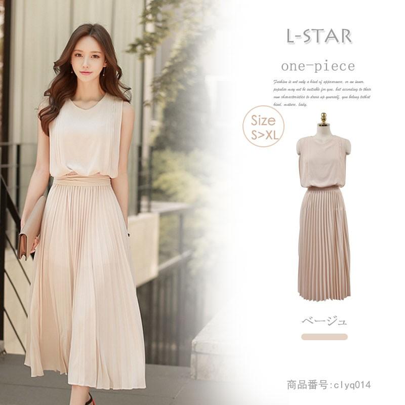 ワンピース チュニック レディース マキシワンピース プリーツロングワンピース ノースリーブ ロング 体型カバー 無地 大人 オシャレ シフォン リボン 裏地 夏 Clyq014 L Star 通販 Yahoo ショッピング